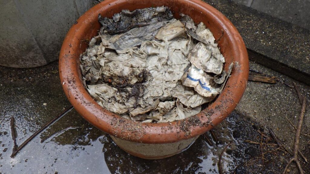 雑草も分解してもらおう(仕込み) 雑草堆肥化 Twitter Facebook はてブ Pocket LINE コピー 2023.01.042021.12.25 2021年 年末 実家で草むしり、結構 抜いてきました。 土がついたまま、「米ぬか」をたっぷり 掛ける。 「発酵牛糞」を加える。 良く 混ぜます。 素焼きの鉢植えに 入れていきます。 「ミミズコンポスト」から 「ミミズの力」を拝借。 全部入れたら 乾燥除けの新聞紙を乗せて、お水をたっぷりかけ、蓋を被せます。 仕込み完了。
