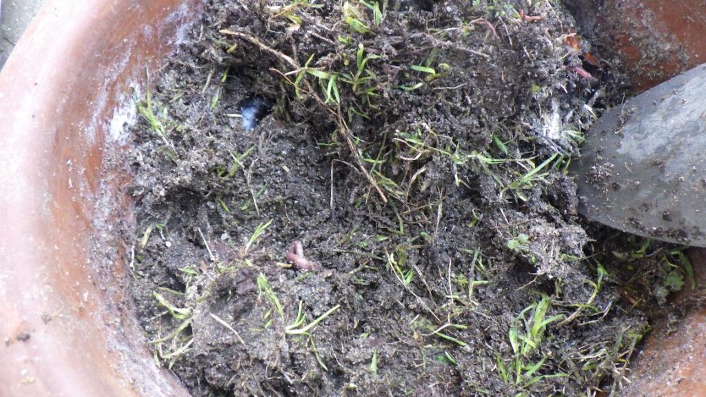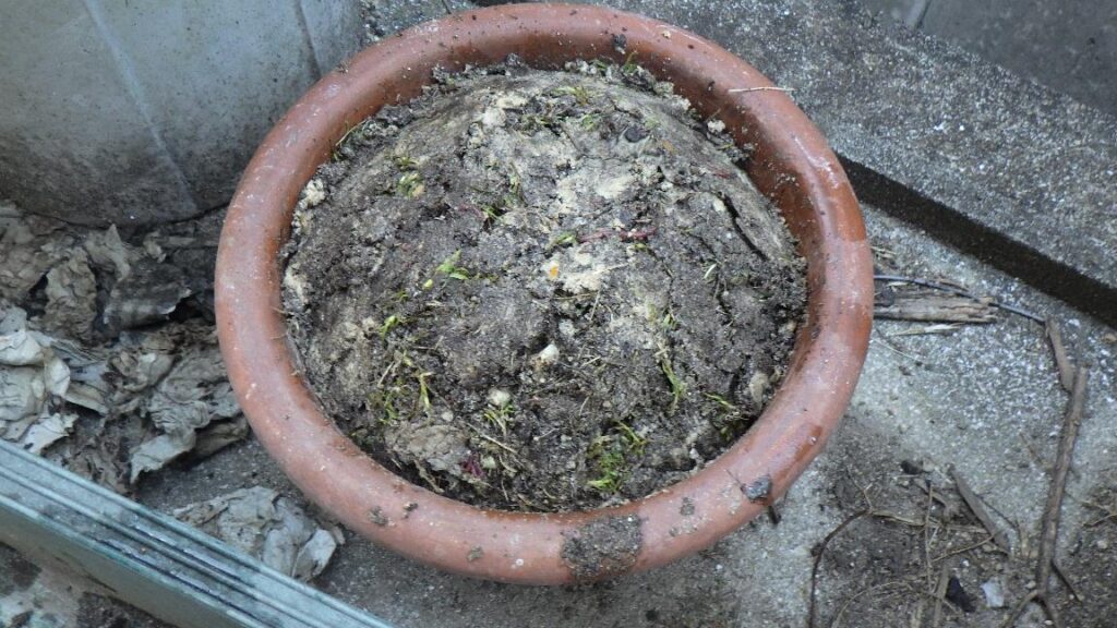 中は こんな感じ。雑草と土 そのまま。いや! 仕込んだ時よりも 雑草が元気そう?
