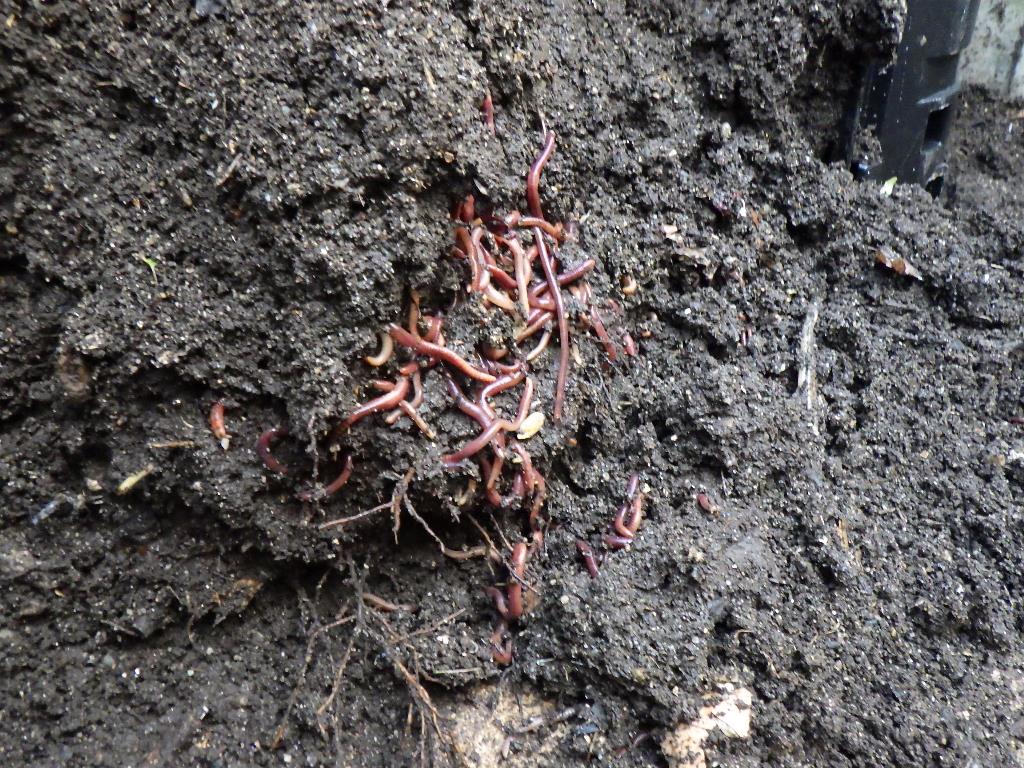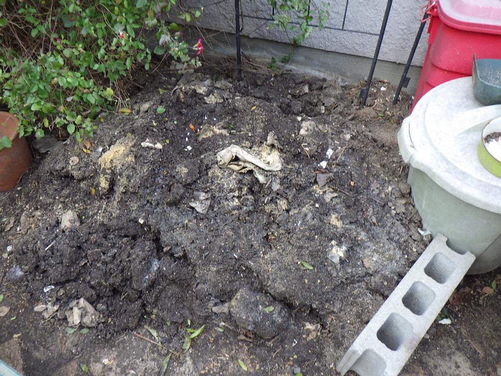 ほぼ堆肥化した「ミミズ塚」をコンポスト化します。