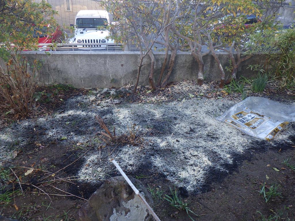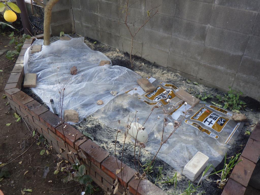 「実家の庭を森の土へ」プロジェクト 土壌菌 Twitter Facebook はてブ Pocket LINE コピー 2023.01.08 2023年1月5日 お正月のご挨拶にお邪魔しました。 腐葉土、米ぬか、ミミズの土(白糸菌がいっぱい繁殖しています) 畑から、作業開始していきます。(卵の殻が ありました。砕いておきました) 腐葉土を 撒きました。 米ぬかを撒き、「ミミズの土」を撒いていきます。 乾燥防止用のシート?を 掛けておきます。 この辺にも、花を植えるので まず、腐葉土、米ぬかを撒ていきます。 水をかけて シートを掛けておきます。 人間の作業は終了。 あとは、ミミズさんに お任せです。