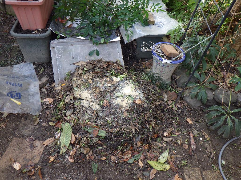 簡易コンポスター設置(葉っぱ追加) コンポスター10 Twitter Facebook はてブ Pocket LINE コピー 2023.01.09 2023年1月9日 昨日の続き 庭の落ち葉。ほっとくと ずうっと変化なし。今年は 堆肥化します。 乾燥しないように新聞紙を掛けてます 新聞紙の下は 白糸菌一杯の土 落ち葉と土を入れちゃいました。 選定後 土と混ぜときました 10日程で 土着菌が沢山付いてます 入れちゃいました。 「牛ふん」が 余ってたので 入れときます。 内部の温度が測れるように パイプを差し込んでおきます。